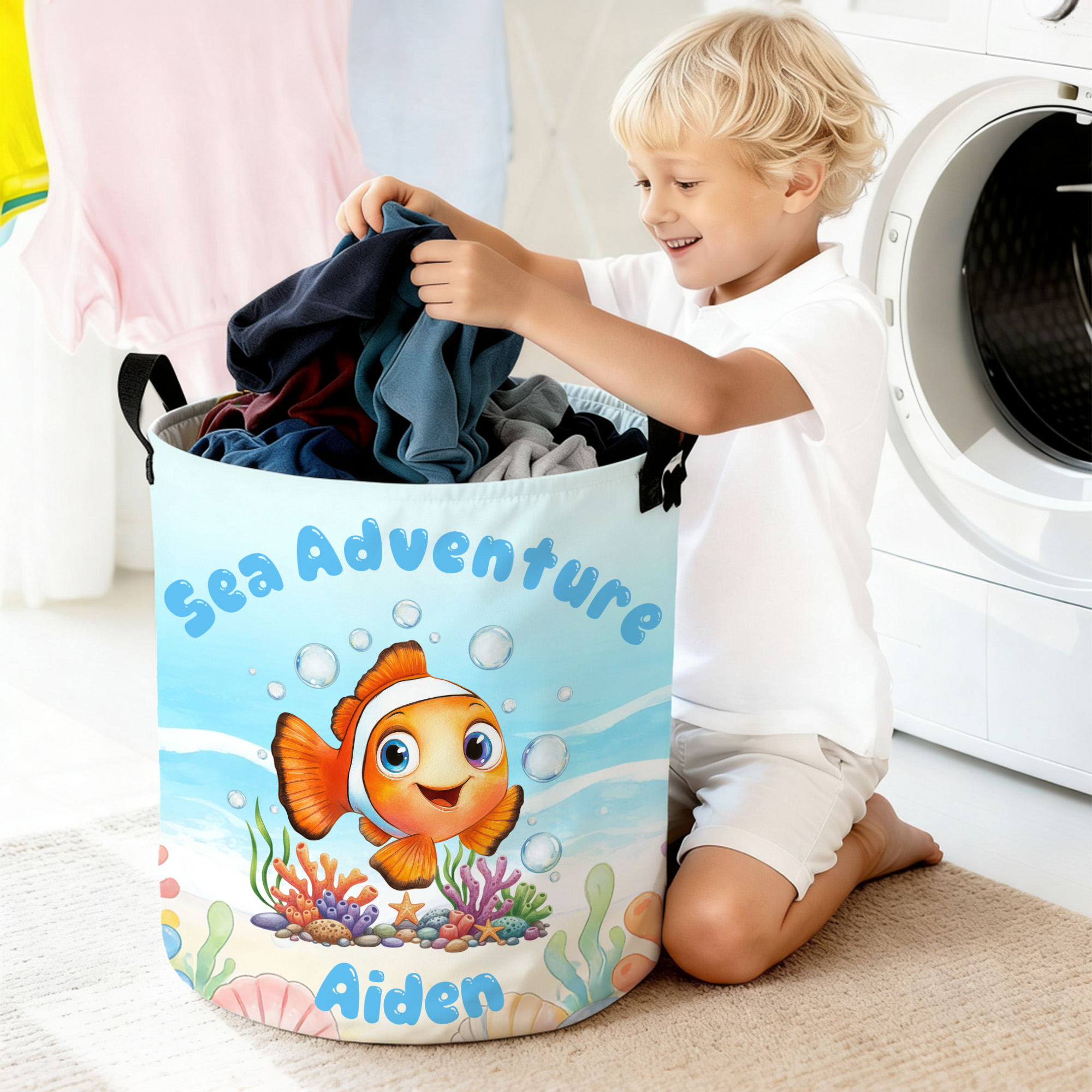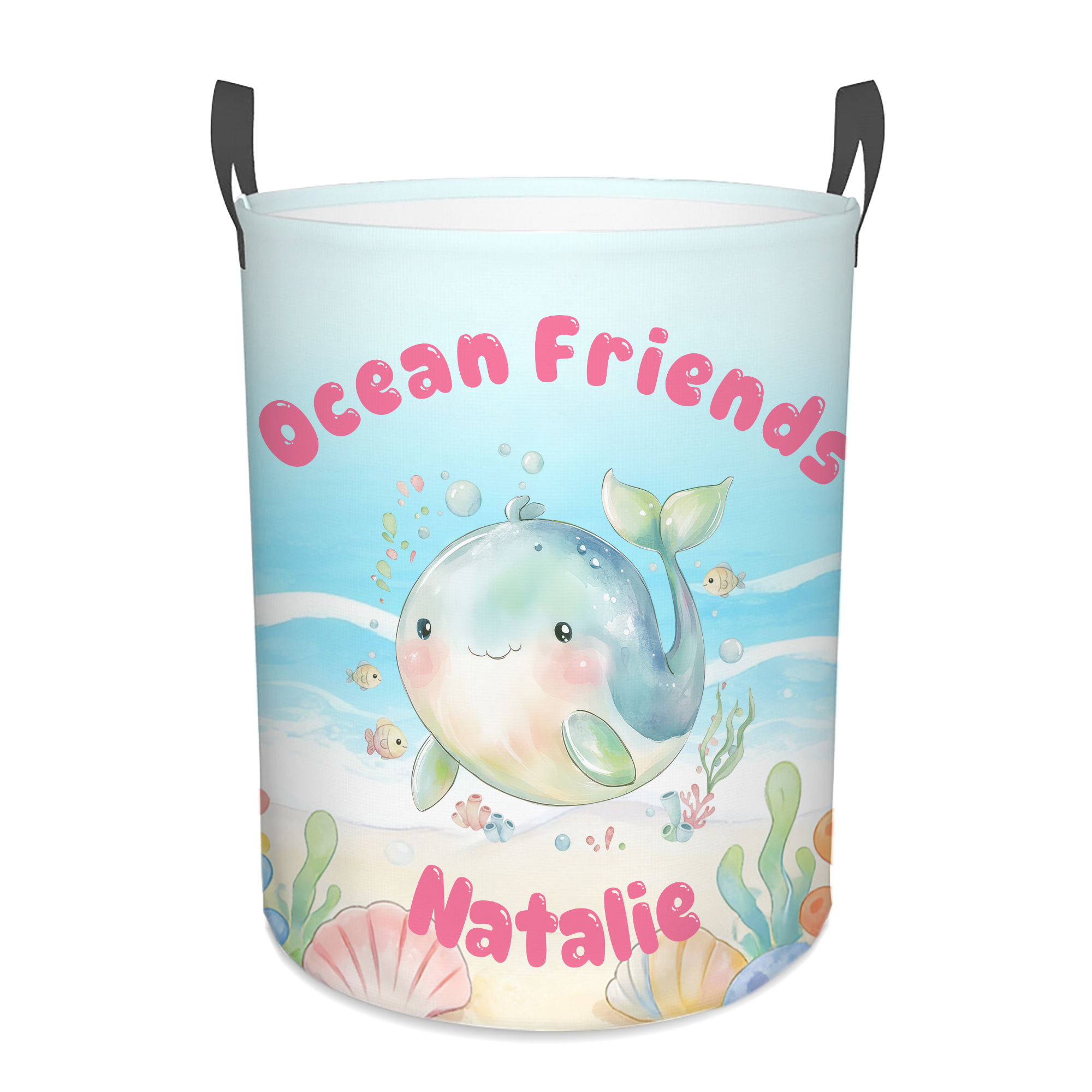 Personalized Name Cartoon Sea Animal Design Storage Basket with Handles |