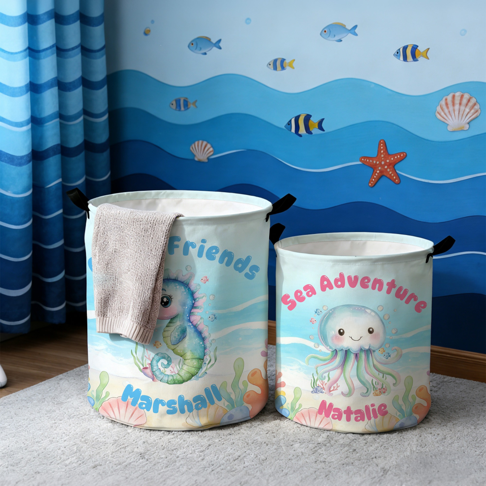 Cartoon Sea Animal Design - This storage basket features a sweet cartoon sea animal theme that adds a colorful and playful touch to any nursery or bathroom. Its bright and friendly characters bring a fun look that kids instantly enjoy, blending easily with ocean-themed or modern room decor.